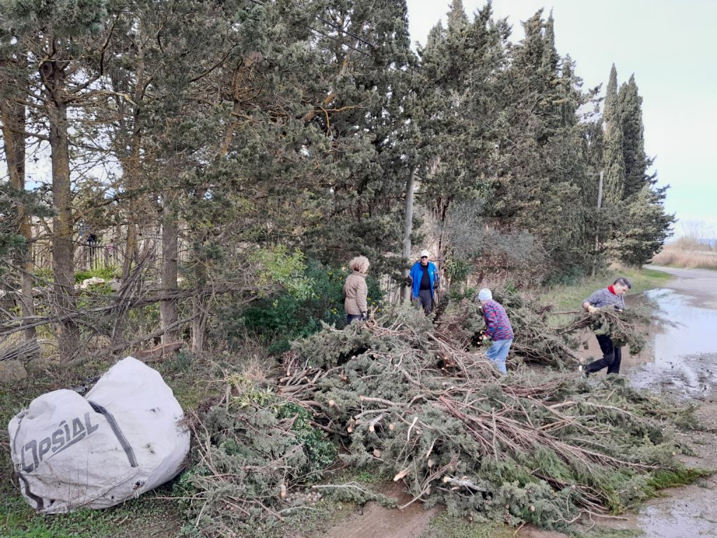 - 2200 kilos de déchets verts (évacuation de 11 Cyprès verts, 1 Acacia, 1 Pittosporum, de nombreuses Inules visqueuses et Coronilles…)